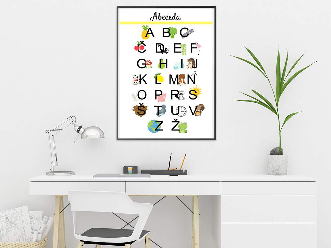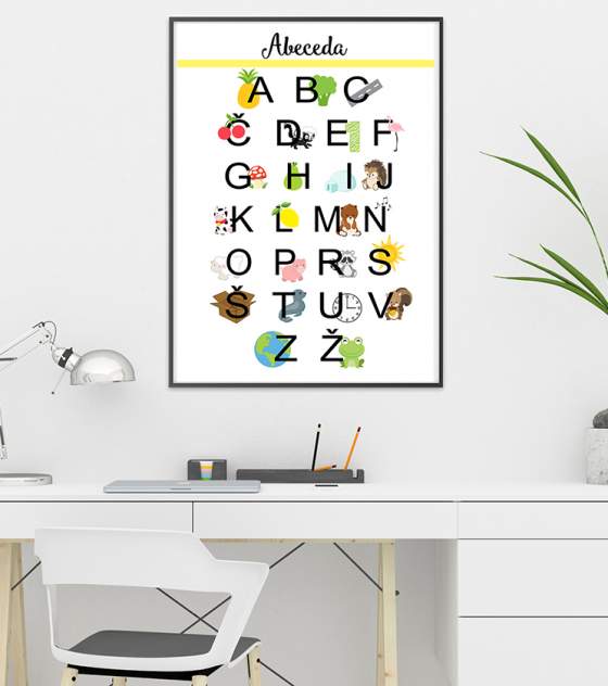 Print abeceda z velikimi tiskanimi črkami in slikicami. Izberete lahko med velikostjo A4 ter A3. Tisk na 300g papir. Cena za 1 kom